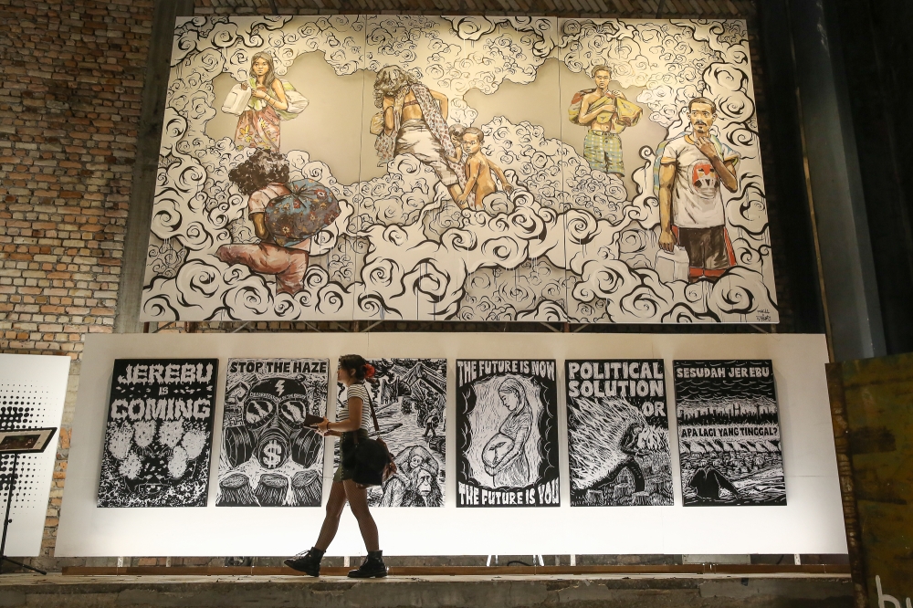 Those who come to the exhibition will be treated to a celebration of murals including the Transboundary Haze by Ernest Zacharevic of Splash & Burn and Fahmi Reza’s Caution: Jerebu Is Coming Back.