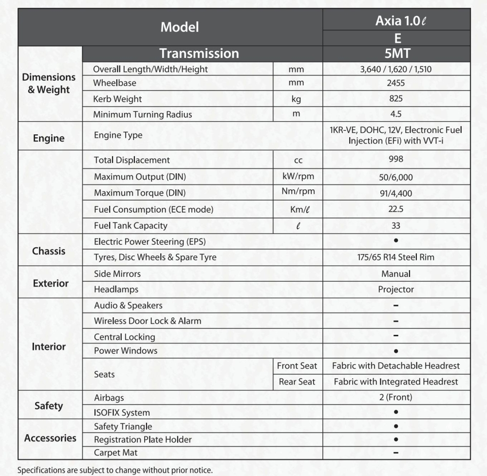 In terms of design, it looks pretty much the same as the 2019 Perodua Axia E except that it carries an older bumper design from the 2017 model year. Under the hood, it still runs on the same 1.0-litre 3-cylinder 1KR-VE DOHC 12V VVT-i engine mated to a 5-speed manual transmission. The engine produces 50kW (67hp) of power and 91Nm of torque. The Axia E with a 33-litre fuel tank and 825kg kerb weight, boasts a rated fuel efficiency of 22.5 km per litre.