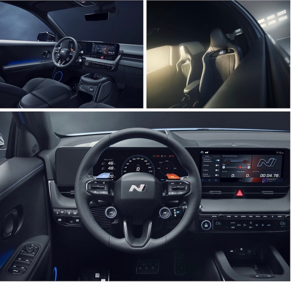 Gone is the practical movable centre island as the Ioniq 5 N gets a fixed lower centre console with knee pads and shin support. What’s interesting is that the car now uses USB-C for charging and connectivity, which is a notable tech upgrade from the standard Ioniq 5. It also retains two large displays and this time it gets black bezels. The digital instrument clusters have a different UI from the standard Ioniq 5 and it can even show a virtual RPM gauge for a more ICE-like experience.
