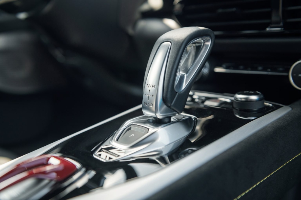 The similarities continue on the inside, where you’ll find a sporty flat-bottomed steering wheel and bucket seats upholstered in leather (Alcantara is optional). The Emira benefits from technologies borrowed from Chinese part-parent Geely—the seats feature 12-way power adjustment, and you’ll also find a 12.3-inch digital instrument display, a 10.25-inch infotainment touchscreen with Apple CarPlay and Android Auto support, automatic climate control and a six-speaker, 560W KEF sound system.