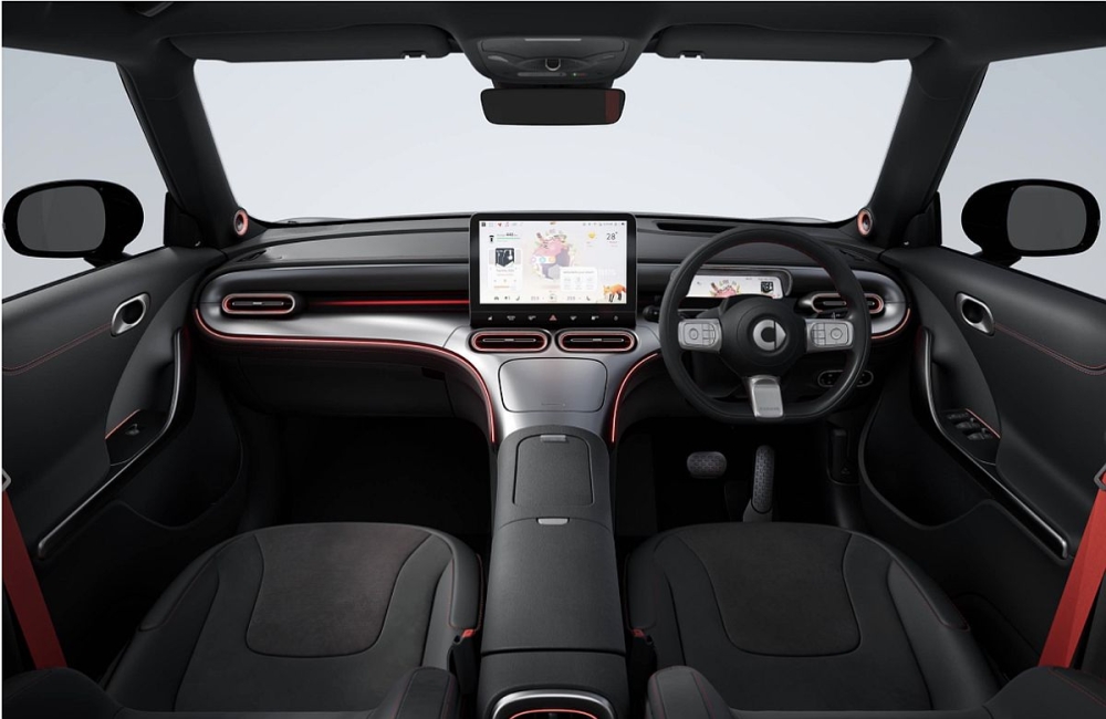 In the interior, the Smart #1 Brabus gets a black and dark silver interior with sporty red accents which include the seat belts. The seats and the steering feature a combination of leather and Alcantara materials.