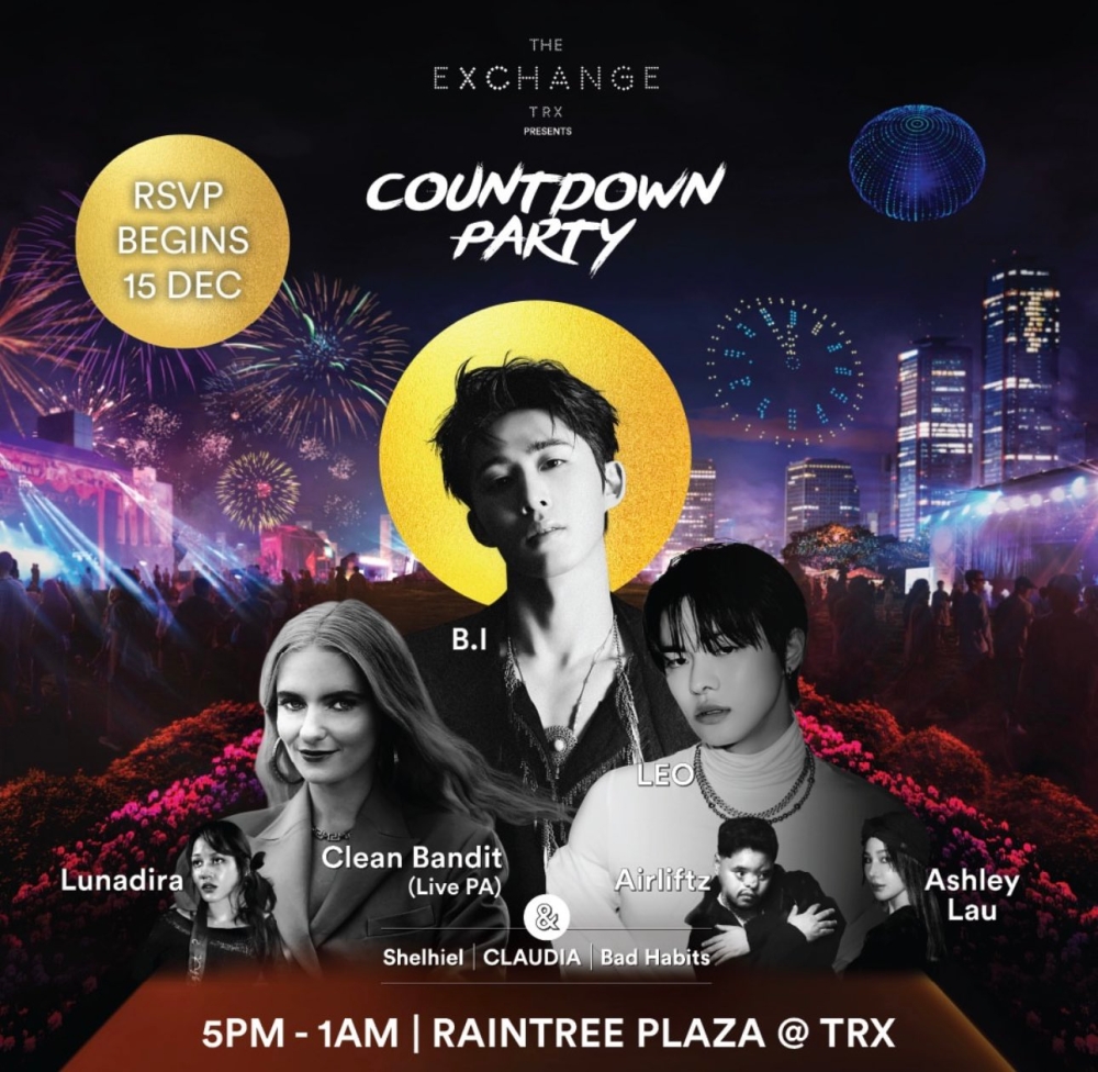 The newly-opened The Exchange TRX mall will be hosting its first countdown party at the Raintree Plaza open space from 5pm until 1am at the entrance of the building.