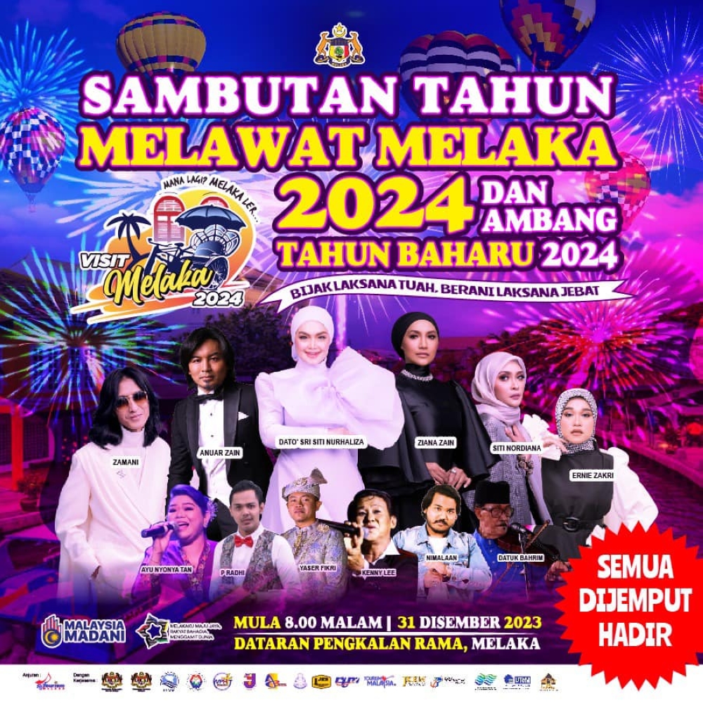 Alternatively, there is also the Visit Melaka Year 2024 countdown celebration with musical performances by 11 prominent Malaysian singers including Datuk Sri Siti Nurhaliza, Ziana Zain, Anuar Zain, Siti Nordiana, Zamani Slam and Ernie Zakri.