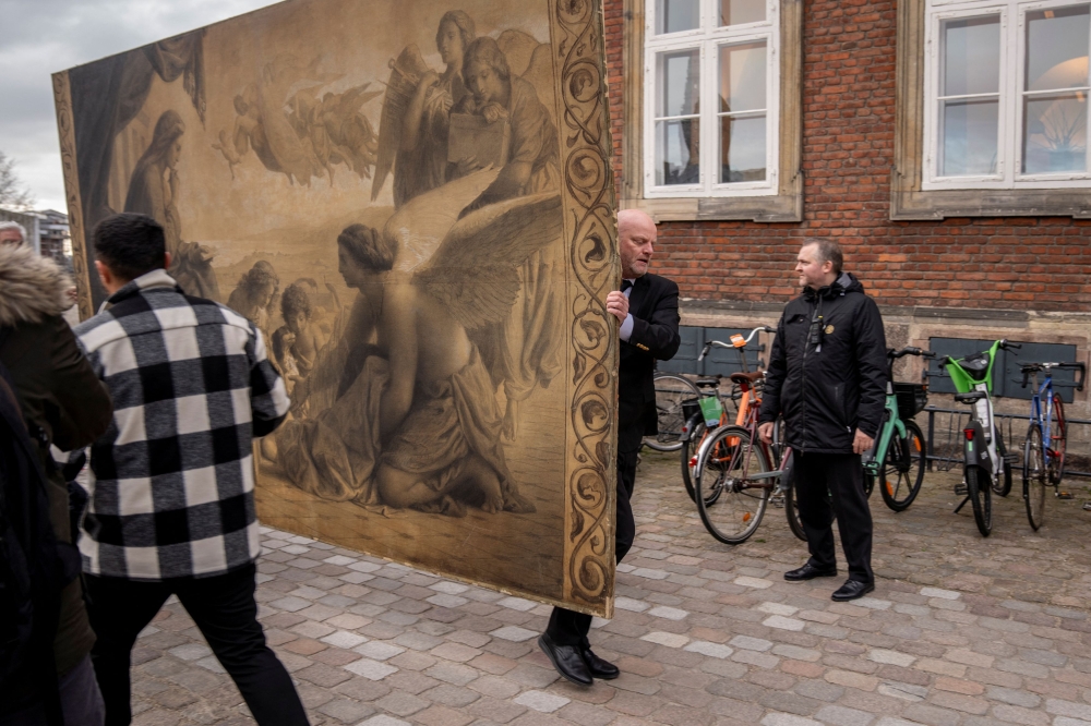 Employees at the nearby Danish Chamber of Commerce, including its CEO, helped to carry paintings as big as 3 metres wide into a section of the nearby Christiansborg palace.