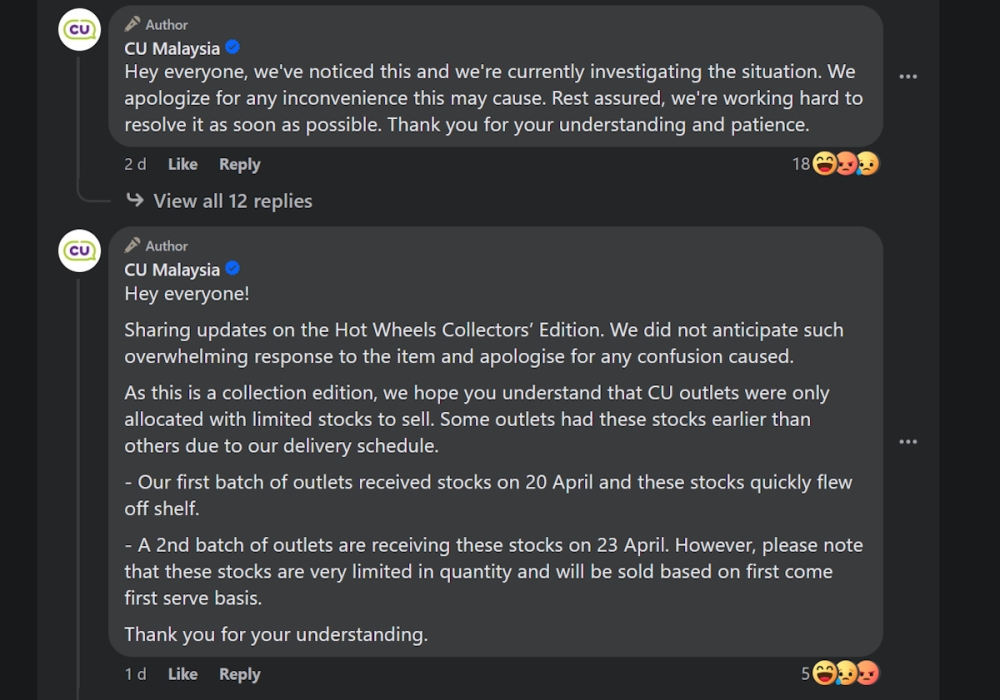 Ironically, CU’s local partner, MyNews decided to release the Proton Saga at selected branches on April 20. While the release did take place, the company didn’t put any pre-requisite or maximum limit for each customer which means plenty of opportunistic customers swoop in a huge number of units at one go and left many genuine fans who looking to get one or two units disappointed.