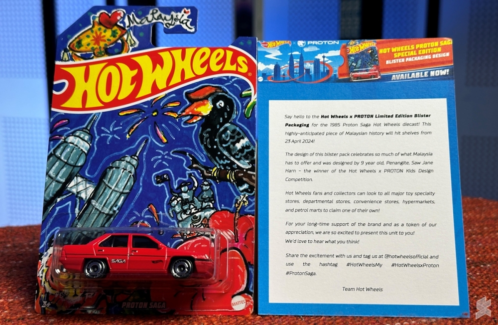 Meanwhile, the note accompanying our unit also said that the Hot Wheels Proton Saga Special Edition will be available at “all major toy speciality stores, departmental stores, convenience stores, hypermarkets, and petrol marts,”.