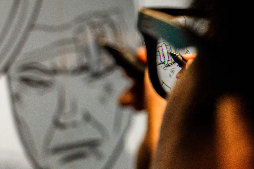 But he taught himself how — by taking photographs of himself and his surroundings and then copying them with a pen — while working part-time at a convenience store and delivering pizzas.