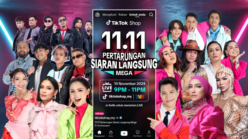 The TikTok Shop 11.11 Mega LIVE Showdown will culminate in a 4-hour livestream show at @tiktokshop_my on the TikTok app starting from 7PM to 11PM on November 10.