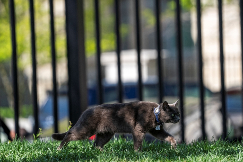 WASHINGTON, April 19 — A cat found its way onto the heavily secured north lawn of the White House in Washington yesterday, causing a stir among journalists who documented the appearance of the grey, green-eyed pet named Sophie on social media.