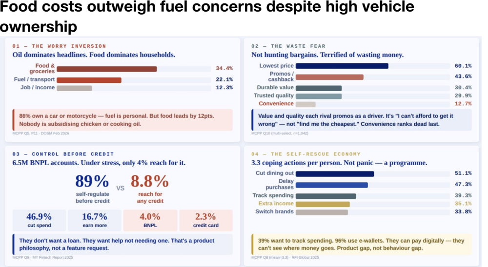The findings suggest that while Malaysia’s fuel subsidy mechanism is cushioning petrol prices, cost pressures are being felt more acutely in daily essentials such as food.