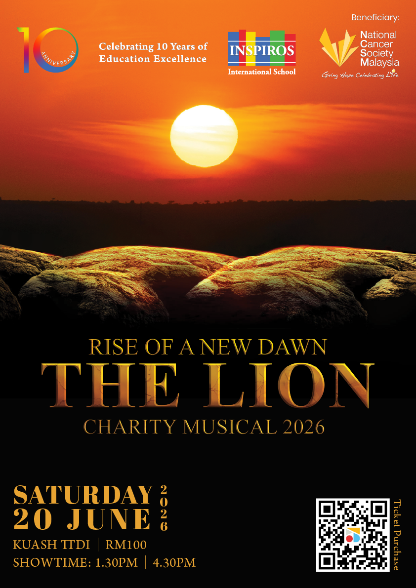 KUALA LUMPUR, April 27 — In a stirring fusion of performing arts and community compassion, Inspiros International School will present THE LION: RISE OF A NEW DAWN, a charity musical production aimed at raising funds and awareness for the National Cancer Society Malaysia (NCSM).