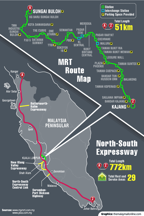 In contrast, the MRT covers a 51km stretch within the Klang Valley, from Sungai Buloh to Kajang.