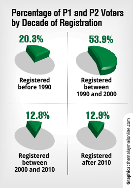But Ong noted that the registration of voters using P1 and P2 ICs had not ended, with 25.7 per cent of them going on the electoral roll in the years after 2000.