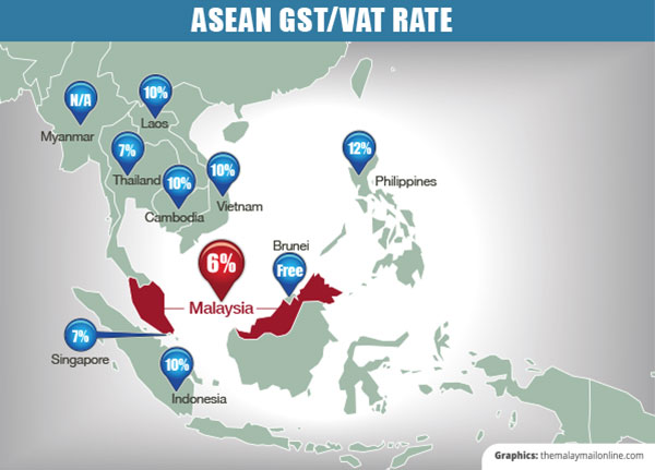 Malaysia’s proposed GST rate of 6 per cent is the lowest in the region, whereas most countries implement a 10 per cent value added tax (VAT).