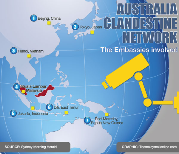 On the heels of the US espionage storm, the Sydney Morning Herald (SMH) today reported that Australia’s electronic intelligence agency was using its diplomatic missions to spy on its Asian neighbours.