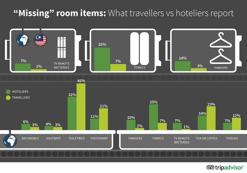 In the “TripBarometer Truth in Travel” poll conducted online by independent market research firm Edelman Berland in June and July 2013, 69 per cent of Malaysian respondents admitted to taking at least one item from hotel rooms in which they were guests.