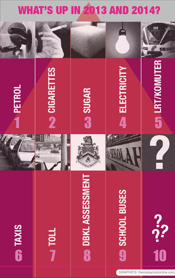 KUALA LUMPUR, Jan 1 — The year 2014 has been dubbed as the year of price hikes as Malaysians prepare to tighten their belts for leaner days ahead.