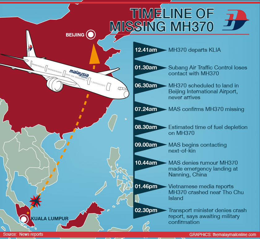 The 11-year-old Boeing took off at 12.40am from Kuala Lumpur International Airport and was last heard from at 1:30am, according to the airline.
