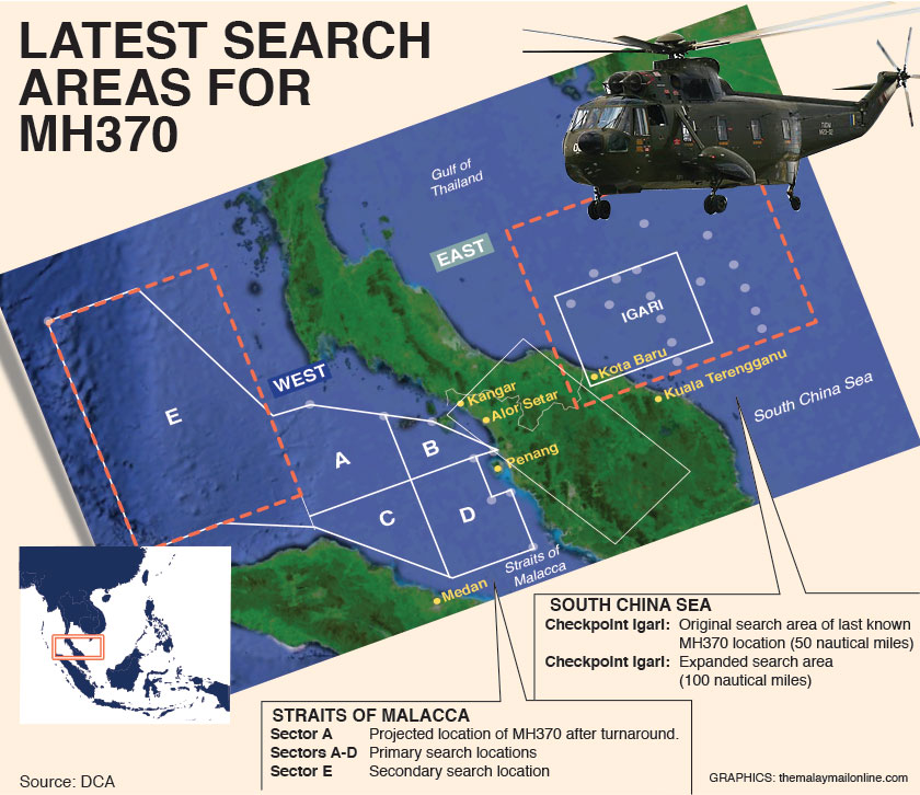 From there, the teams will comb the Malacca Straits in four sectors, before heading northwest towards Vietnamese waters.