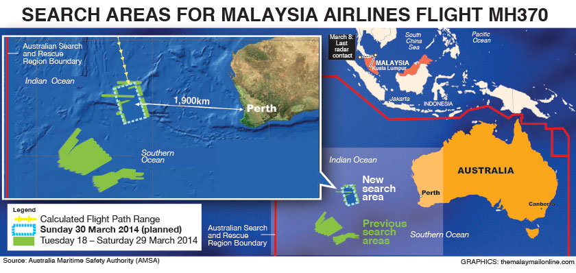 PERTH, March 30 — A new search area failed to yield an immediate breakthrough in the hunt for ill-fated Flight MH370 today, as Australia appointed its former military chief to help coordinate the operation in the Indian Ocean.