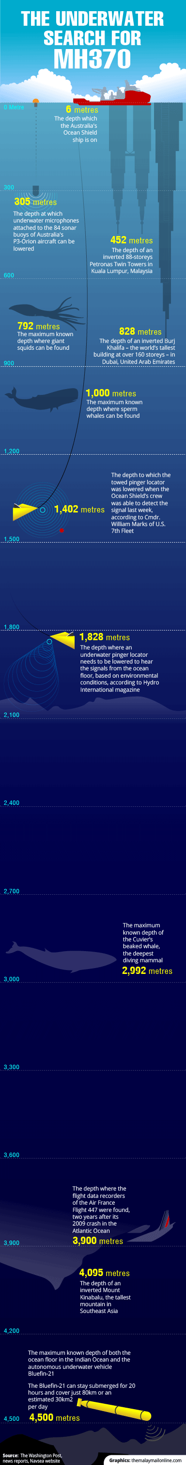 Should the signals match the black boxes mounted on board MH370, the underwater challenges to recover its wreckage remain daunting, as can be seen in the infographic below: