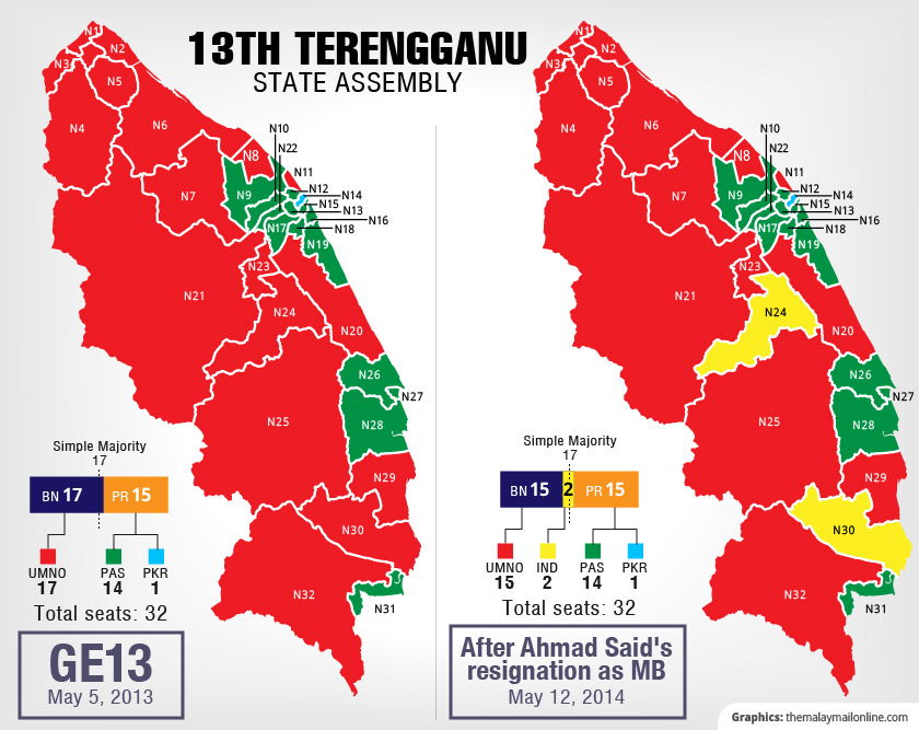 Ahmad and Ghazali, who have refrained from announcing their allegiance to either bloc since they went rogue late Monday, are considered independent representatives in the Terengganu state legislative assembly.