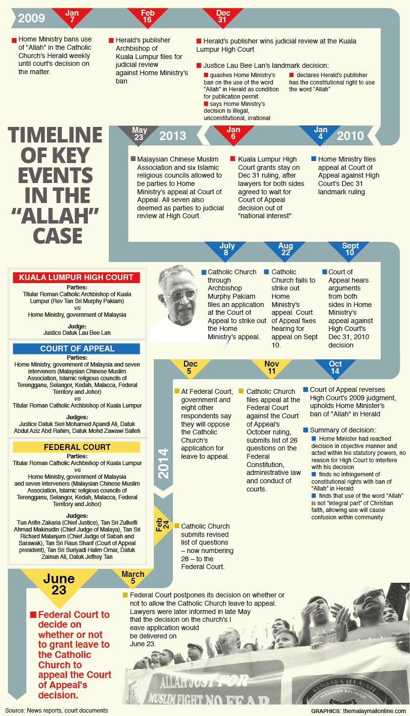 The legal dispute has been in the courts for the last six years after the Home Ministry banned the publication of the word “Allah” in the Herald’s Bahasa Malaysia section in 2007.