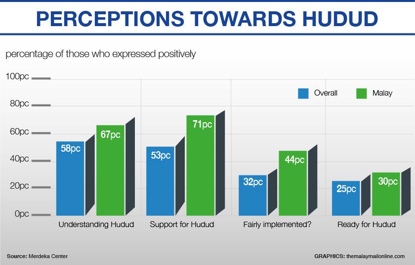 Just 25 per cent of respondents — and 30 per cent of Malays — believed that Malaysia is ready to introduce hudud now.