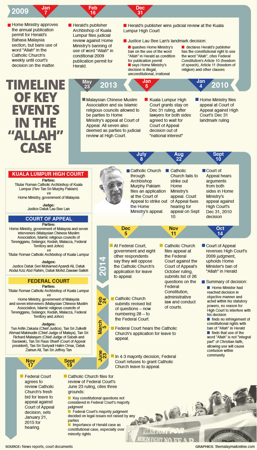 The legal dispute has been in the courts for the last six years after the Home Ministry banned the publication of the word “Allah” in the Herald’s Bahasa Malaysia section in 2007.