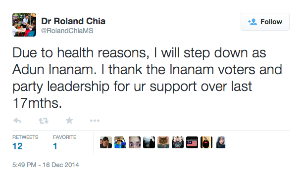 Dr Chia, who holds various positions within PKR, was then unreachable as he was abroad, but he broke his silence almost two days later, again on Twitter, to say that he would be issuing a formal statement after Christmas.