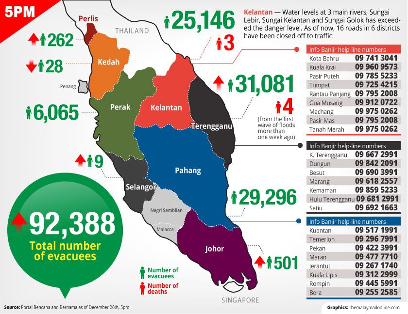 KUALA LUMPUR, Dec 26 ― More than 100,000 people have been evacuated from their homes by authorities in five northern states of Malaysia hit by the Southeast Asian' nation's worst monsoon floods in decades.