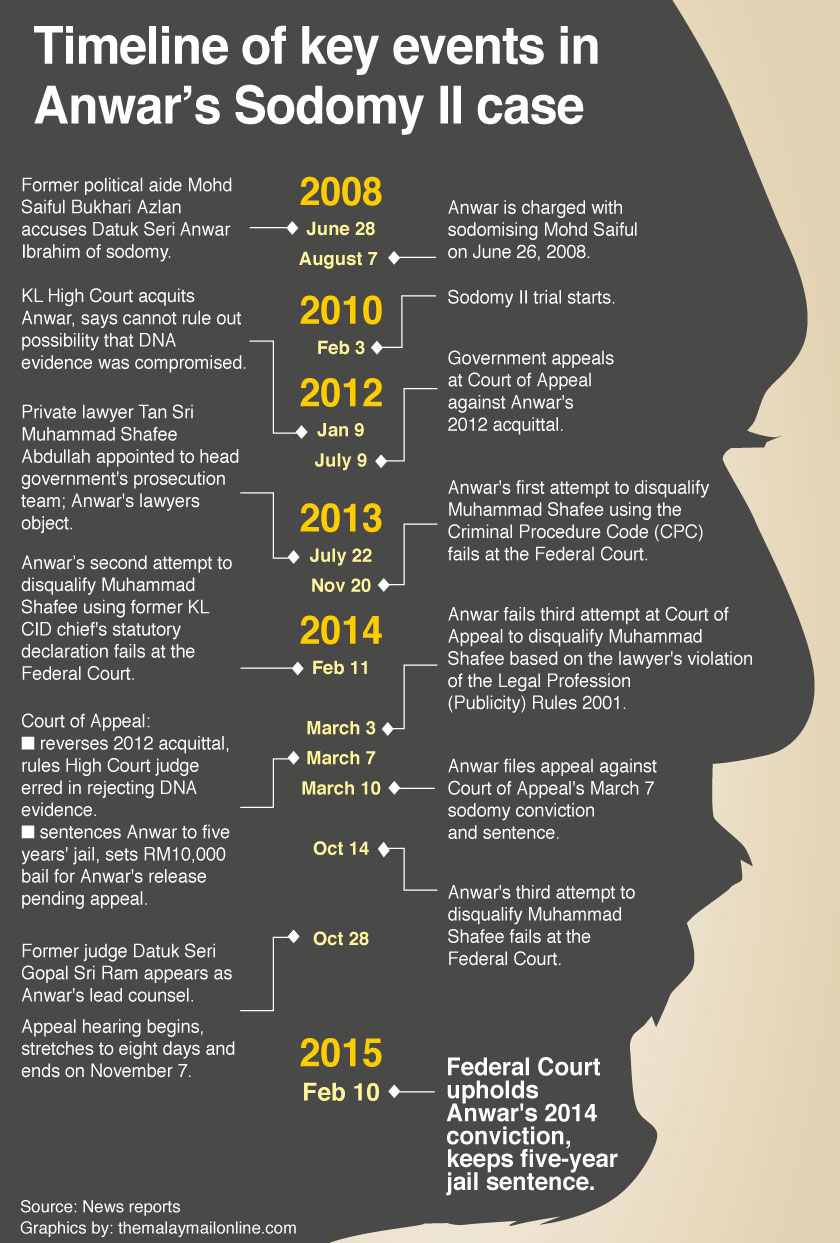 PUTRAJAYA, Feb 10 — Datuk Seri Anwar Ibrahim today accused the Federal Court of being on the “dark side” for upholding his conviction of a sodomy charge that he maintained was politically motivated.