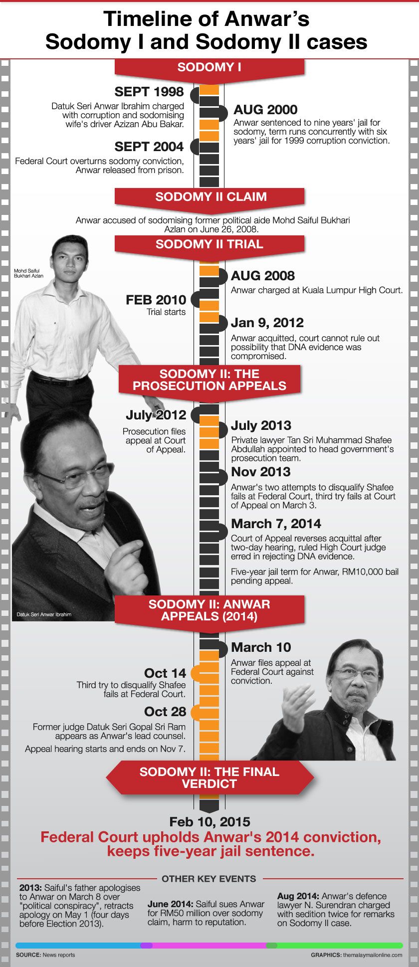 The Federal Court upheld Tuesday the Court of Appeal’s five-year jail sentence and sodomy conviction against Anwar, and maintained the five-year sentence it meted to him last year.