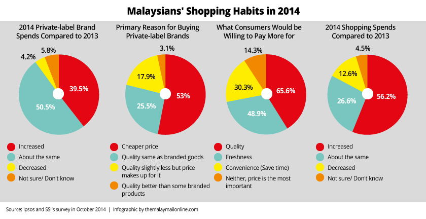 While some Malaysians tried to scale down on pricier branded items, there were also shoppers who were seen as spending more with over half or 56 per cent of saying that they had increased their expenditure when compared against 2013.