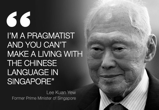 “I’m a pragmatist and you can’t make a living with the Chinese language in Singapore,” Lee told National Geographic in 2009 after shutting down Chinese education.
