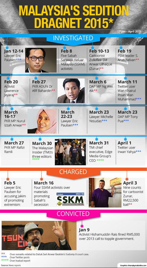 The Sedition Law has been used to largely arrest activists and opposition leaders, with many of the cases this year involving Twitter posts and comments on Opposition Leader Datuk Seri Anwar Ibrahim’s second sodomy case.