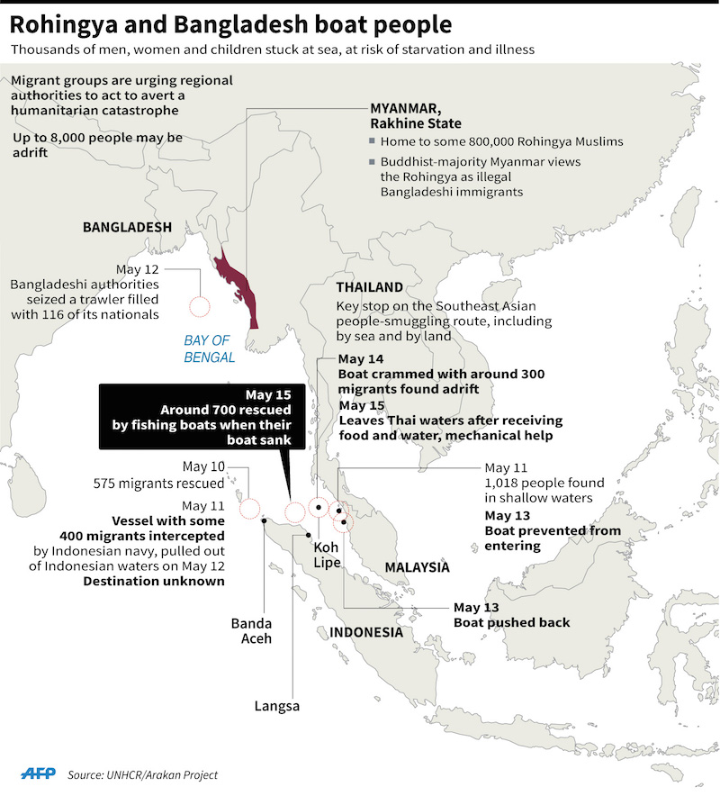 An estimated 6,000 to 20,000 migrants are fleeing ethnic persecution in Myanmar and poverty in Bangladesh. They are adrift in the Andaman Sea and the Straits of Malacca,