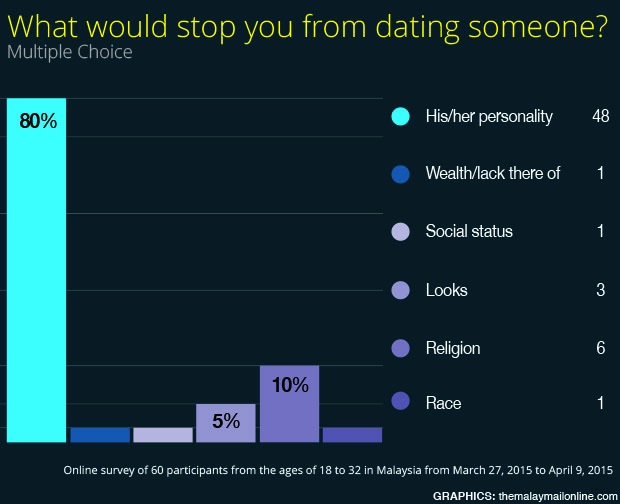 Many of the millennials when interviewed, told Malay Mail Online that the benefit of dating someone from outside your race is the opportunity to learn about a different culture.“I love getting to know somebody with a different culture, with a different religion, something different from my own because there is so much to learn about the person,” one of the survey participants, 29-year-old Choo May Kuen said in an interview.