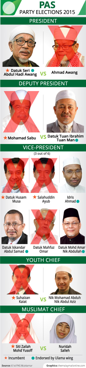 KUALA SELANGOR, June 5 — The clergy class, or ulama, trounced party progressives in a near-total takeover of PAS last night, winning 22 out of the 23 posts open for contest in the Islamist party’s central working committee