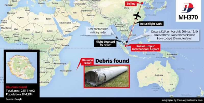 Flight MH370 was travelling from Kuala Lumpur to Beijing when it mysteriously turned off course and vanished on March 8 last year.
