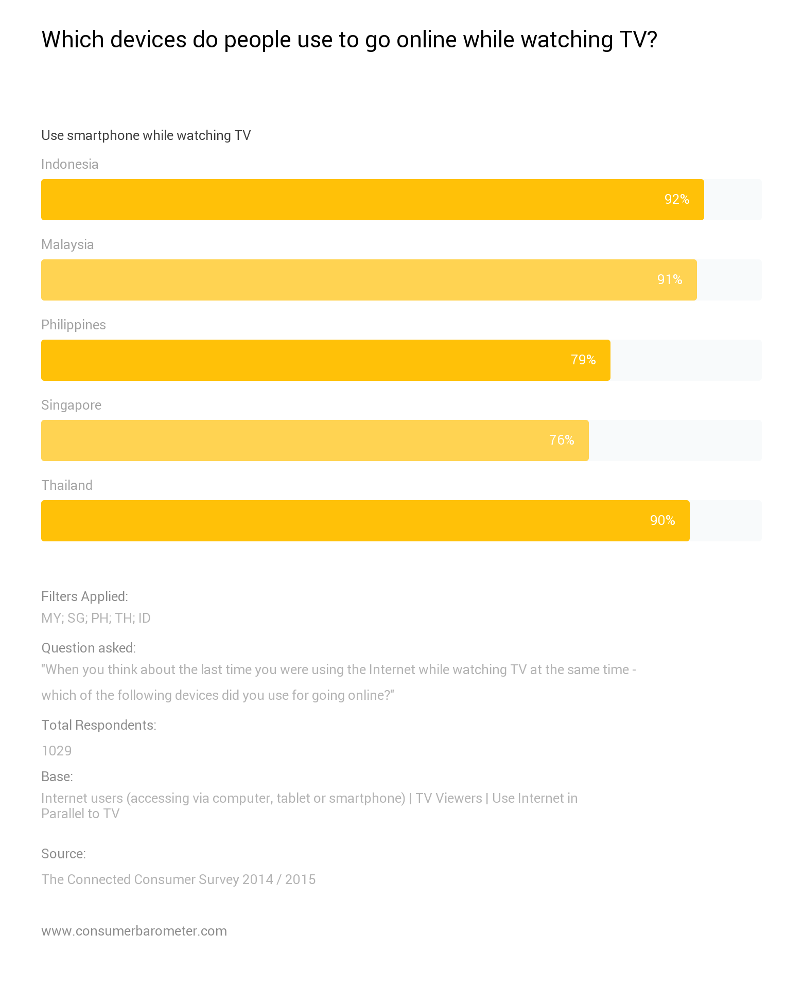 According to Google’s Consumer Barometre 2015 report, 91 per cent of its Malaysian respondents are “multi-screening” with their smartphones, compared to 92 per cent of Indonesians and 90 per cent of the Thais.