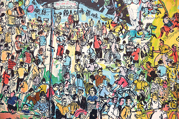“The current and upcoming projects I’m working on are painting on canvas using acrylic and Chinese ink,” said Kide. He already did two, one called Pasar Rabu and another called Pokan Pilah. Most of his works are based on his parents’ kampung life back in the 1960s and 1970s and rendered in vivid beautiful colours. With almost cartoon-like features and usually a crowded canvas, Kide describes his new style as a cross between cartoon, comic, contra and pop colour.