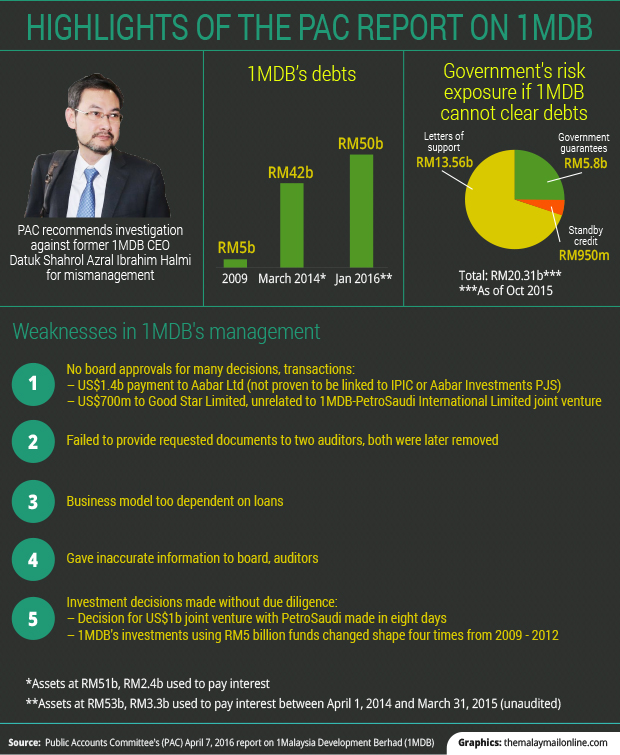 KUALA LUMPUR, April 7 — The Public Accounts Committee (PAC) released today its report on 1Malaysia Development Berhad (1MDB), after an investigation that spanned 10 sessions across nine months.