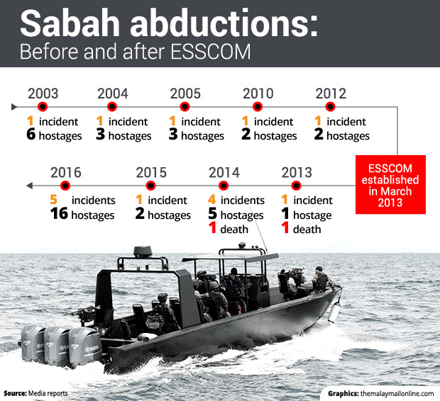 KOTA KINABALU, Sept 19 — Regular abductions by Filipino gunmen here despite the formation of the Sabah Eastern Sabah Security Command (ESSCom) to specifically deter cross border crimes is raising fresh questions about the agency’s function.