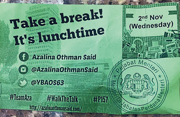 Food coupons: Apart from the lawmakers — when the Dewan Rakyat and Dewan Negara are in session — there are also a lot of officers and personnel in Parliament. Several of them have food coupons which can be redeemed under their ministry at the cafeteria. Reporters are currently given lunch boxes provided by Minister in Prime Minister’s Department in charge of Parliamentary Affairs Datuk Seri Azalina Othman Said.