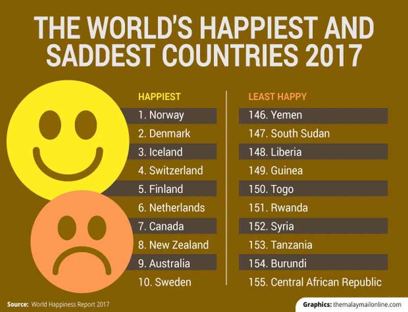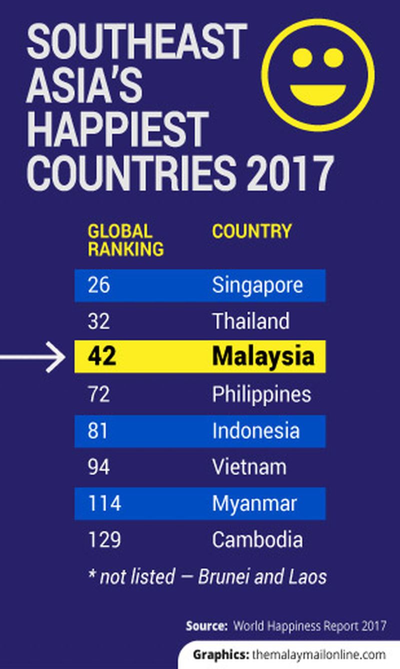 KUALA LUMPUR, March 20 — Malaysia is the 42nd happiest country in the world, according to the World Happiness Report 2017 released today.
