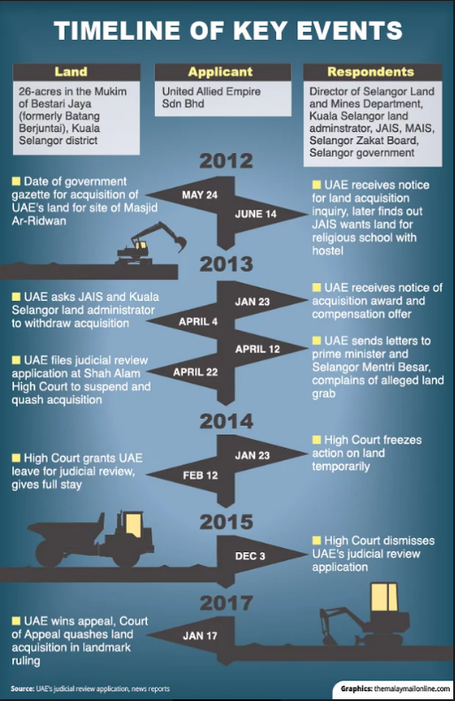 In the lawsuit, UAE had accused the Selangor authorities of purported racial oppression and violation of its constitutional rights, claiming that the religious bodies had abused their powers to avoid paying fair compensation for the land, and had shored up their land bank for future development.