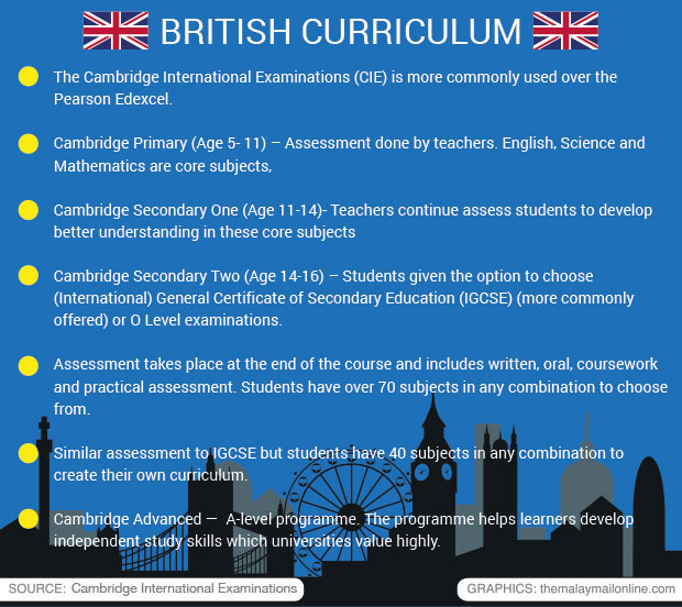 A quick check with some international schools show that most follow the British curriculum where students will be required to sit for the International General Certificate of Secondary Education (IGCSE) programme by the Cambridge International Examinations (CIE).