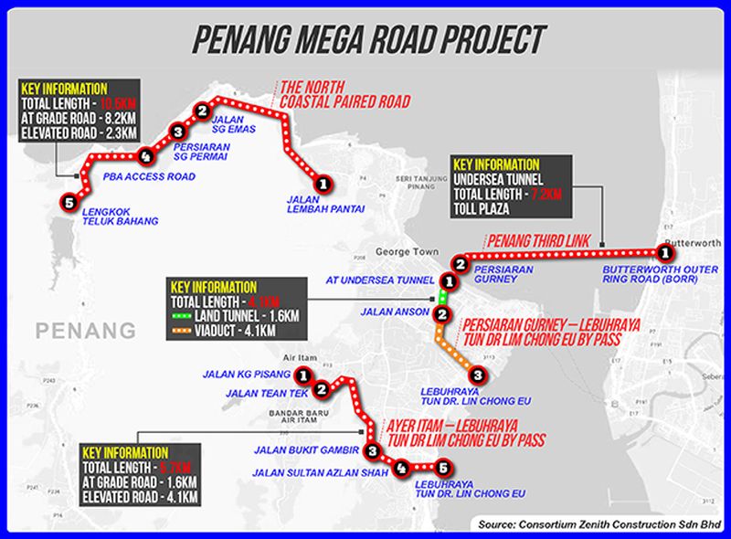 The project also includes a paired road on the island that will connect Tanjung Bungah to Batu Ferringhi and later to Teluk Bahang, Tun Dr Kim Chong Eu Expressway to Air Itam and Gurney Drive to the Tun Dr Lim Chong Eu Expressway.