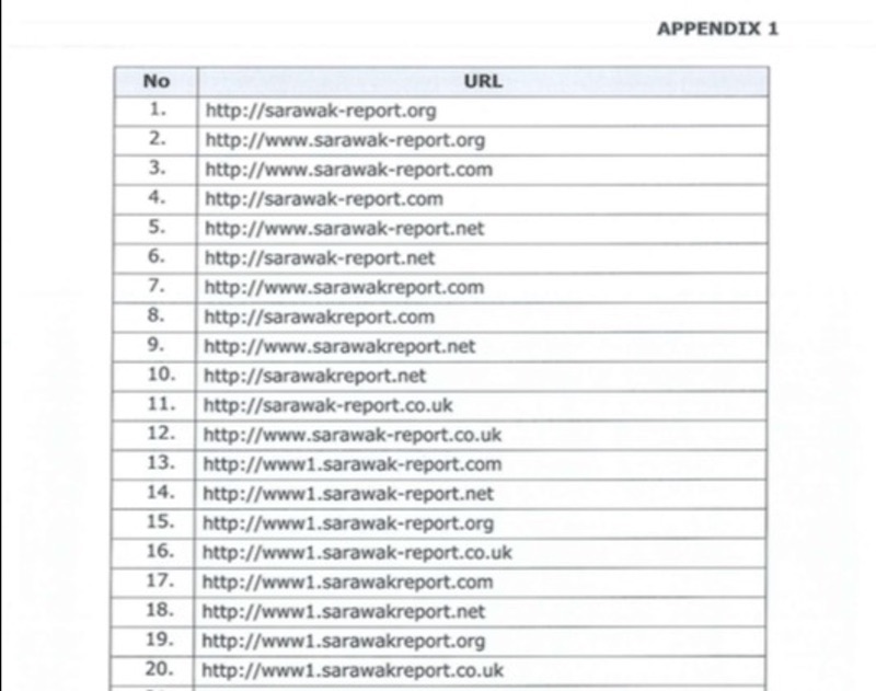 The first 20 of the 179 addresses banned were different permutations of Sarawak Report’s address (www.sarawakreport.org), including non-existent ones such as sarawak-report.org, www.sarawak-report.net and ww1.sarawak-report.com.
